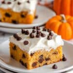 Keywords: Pumpkin cake, chocolate chip cake, pumpkin dessert, cream cheese frosting, autumn dessert