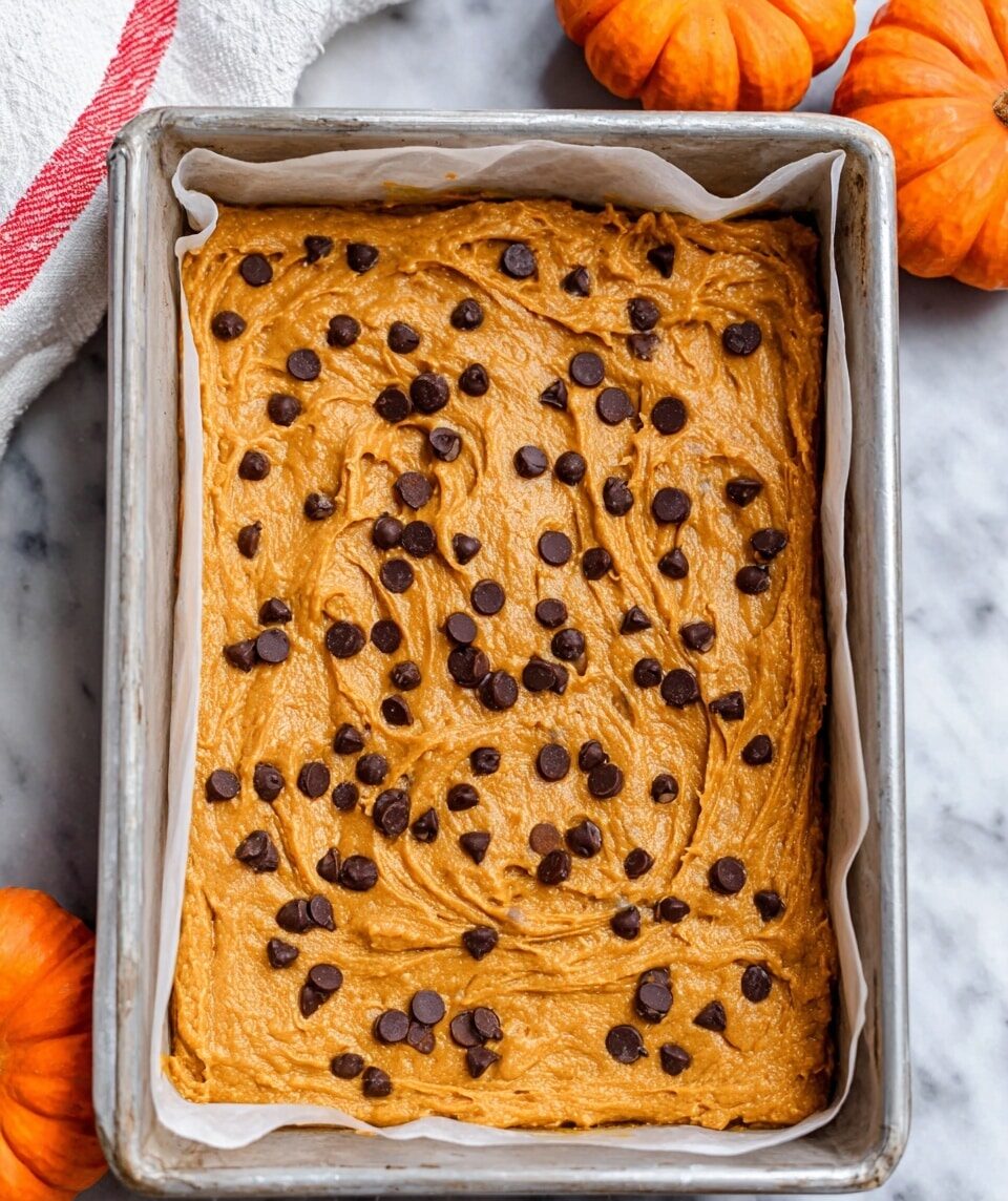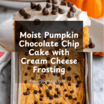 This Pumpkin Chocolate Chip Cake is a moist and flavorful dessert perfect for autumn or any time you’re craving a sweet treat with seasonal spices. The cake features a tender crumb infused with pumpkin puree and warm spices, studded with mini chocolate chips for melty pockets of sweetness. It’s topped with a creamy, smooth cream cheese frosting that balances the spices and sweetness beautifully.