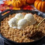 Keywords: pumpkin crisp, pumpkin dessert, autumn dessert, pumpkin pie spice, streusel topping, fall recipes, cast iron skillet dessert