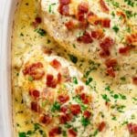 - Add Bacon and Finish Baking: Remove the foil, sprinkle the chopped cooked bacon over the top of the chicken, and bake uncovered for an additional 10 to 15 minutes until the chicken is fully cooked and browned slightly on top.