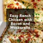 This Ranch Chicken recipe combines juicy chicken breasts with creamy ranch dressing, fresh mozzarella, and crispy bacon for a delicious, easy dinner. With just a few simple ingredients, you can create a flavorful meal that your family will love.