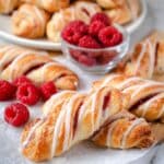 Delight in these Raspberry Bread Twists, featuring soft, fluffy dough enveloped in a sweet raspberry jam swirl and finished with a luscious vanilla glaze. Perfect for a breakfast treat or an afternoon snack, they boast a tender crumb and a beautiful spiral shape that’s both visually appealing and delicious.