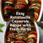This vibrant Ratatouille Casserole combines layers of fresh zucchini, eggplant, and Roma tomatoes with roasted red bell peppers, garlic, and fragrant herbs, all baked to tender perfection. The wine and tomato paste base enhances the rich vegetable flavors, making it a hearty yet healthy vegetarian dish that’s perfect as a main or side.
