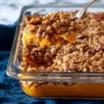 - Add Crust and Final Bake: Evenly sprinkle the chilled pecan crumble topping over the warm sweet potato mixture. Return the casserole to the oven and bake for an additional 10 to 20 minutes or until the crust is nicely browned and crisp.