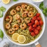 Keywords: shrimp pesto pasta, easy pasta recipe, Italian shrimp pasta, quick dinner, pesto sauce, grape tomatoes pasta