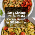 A quick and flavorful Shrimp Pesto Pasta featuring perfectly cooked shrimp, blistered grape tomatoes, and a vibrant homemade or store-bought pesto sauce tossed with al dente spaghetti. This dish is ideal for a delicious weeknight dinner packed with Mediterranean flavors and fresh ingredients.