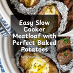 This slow cooker meatloaf paired with baked potatoes is a comforting, hands-off meal perfect for busy days. Tender and flavorful, the meatloaf cooks gently while the foil-wrapped potatoes bake right on top, making dinner both easy and satisfying.