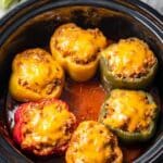 Keywords: slow cooker stuffed peppers, taco stuffed peppers, slow cooker dinner, ground beef stuffed peppers, easy slow cooker recipes, Mexican stuffed peppers