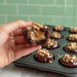 - Bake Brownies: Bake the filled muffin tin in the preheated oven for 18-20 minutes until the brownie bites are set and a toothpick inserted near the center comes out with moist crumbs.