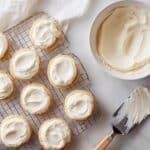 Keywords: soft cookie frosting, buttercream frosting, easy cookie frosting, frosting for stacking cookies, vanilla almond frosting