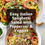 This spaghetti salad is a refreshing and flavorful dish perfect for potlucks, picnics, or a light dinner. Packed with colorful vegetables, tangy Italian dressing, and savory pepperoni, it’s easy to prepare and sure to please a crowd.