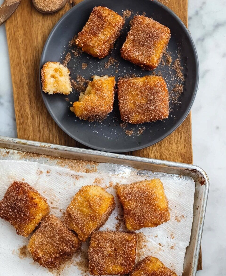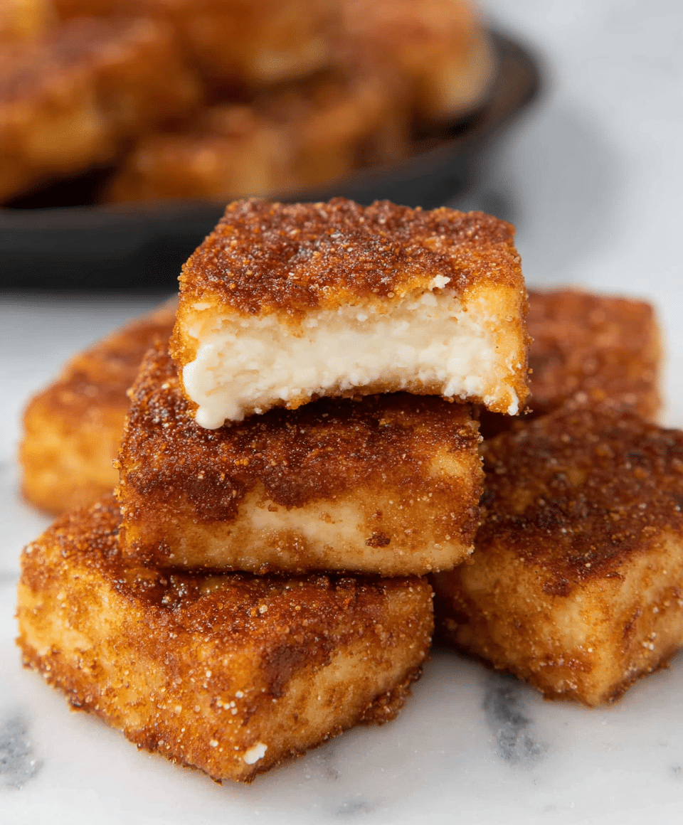 - Finish and Serve: Immediately toss the hot fried custard pieces in the cinnamon sugar mixture. Serve warm or at room temperature. The dessert can be refrigerated and reheated before serving.