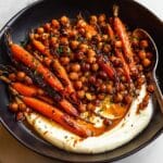 PrintSpicy Maple Roast Carrots with Crispy Chickpeas and Yogurt Sauce Recipe