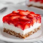 Store the Strawberry Pretzel Salad covered in the refrigerator for up to 3 days. For best texture, avoid freezing. To serve after chilling, slice with a clean, sharp knife and spoon onto plates. Leftovers can be gently reheated at room temperature for a few minutes if desired, but it is best enjoyed cold.