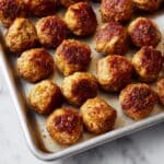 - Form the Meatballs: Using a 1 1/2-tablespoon cookie scoop or your hands, shape the mixture into approximately 32 meatballs. Arrange them evenly on the prepared baking sheet.