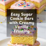 Sugar cookie bars combine the classic flavors of sugar cookies with the convenience of a bar dessert. This recipe yields tender, buttery bars topped with a luscious vanilla frosting and festive sprinkles—a perfect treat for any occasion.