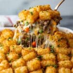If you don’t have tater tots, you can use frozen hash browns or even thinly sliced potatoes as a topping. Adjust baking time as needed to ensure they cook through and crisp up.