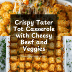 Tater Tot Casserole is a comforting, hearty dish perfect for family dinners. Combining savory ground beef, creamy soup, veggies, and crispy tater tots, it’s an easy crowd-pleaser that comes together quickly.