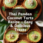 These Thai Pandan Coconut Tarts combine a buttery, crumbly tart shell with a fragrant pandan-infused coconut custard filling, topped with toasted coconut flakes for extra texture and flavor. Perfect as a tropical dessert or a unique treat to impress guests, these tarts are a delightful fusion of creamy sweetness and aromatic pandan essence.