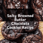 Keywords: salty chocolate cookies, tiny chocolate cookies, browned butter cookies, fudgy chocolate cookies, flaky sea salt cookies