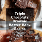 This Triple Chocolate Brownie Batter Bark is a rich and indulgent no-bake treat combining creamy peanut butter, cacao powder, and melty chocolate layers. Perfect as a quick and easy dessert or snack, it features a fudgy brownie-like base topped with a glossy chocolate layer, finished with flaky sea salt and extra chocolate chips for texture and flavor. Ready in minutes and stored in the freezer, it’s a delightful way to satisfy chocolate cravings with minimal effort.