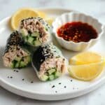 These Tuna Spring Rolls are a fresh and flavorful twist on traditional spring rolls, featuring a spicy tuna filling mixed with Japanese mayo and sriracha, complemented by crisp cucumber and creamy avocado. Wrapped in delicate spring roll wrappers with a hint of toasted sesame oil and served with a tangy tamari-based dipping sauce, they make a perfect appetizer or light meal that’s both satisfying and easy to prepare.