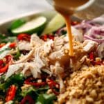 A vibrant and refreshing Vietnamese Chicken Salad featuring tender cooked chicken, crisp wombok cabbage, fresh herbs, and a tangy, flavorful dressing. This salad combines crunchy vegetables with aromatic mint and coriander, all tossed in a light lime and fish sauce dressing, topped with crunchy peanuts for a perfect balance of textures and flavors. Ideal for a light lunch or a healthy appetizer.