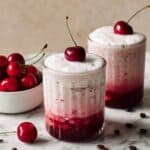 - Step 5: Fill a glass with ice. Pour in the cherry sauce, followed by the espresso and milk mixture. Stir gently to combine.