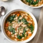 Keywords: white bean soup, vegetarian soup, healthy soup, easy soup recipe, vegetable broth soup, spinach soup, bean soup