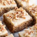 - Frost the Bars: Evenly spread the brown butter frosting over the completely cooled zucchini bars.